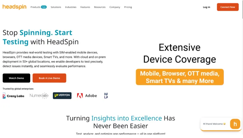 HeadSpin takes end-to-end testing beyond functional validation into complete digital experience monitoring. The platform tests and tracks entire user journeys from mobile devices through backend systems using real devices in actual network conditions across global markets. Testing on emulators misses the real-world performance problems your users actually experience.